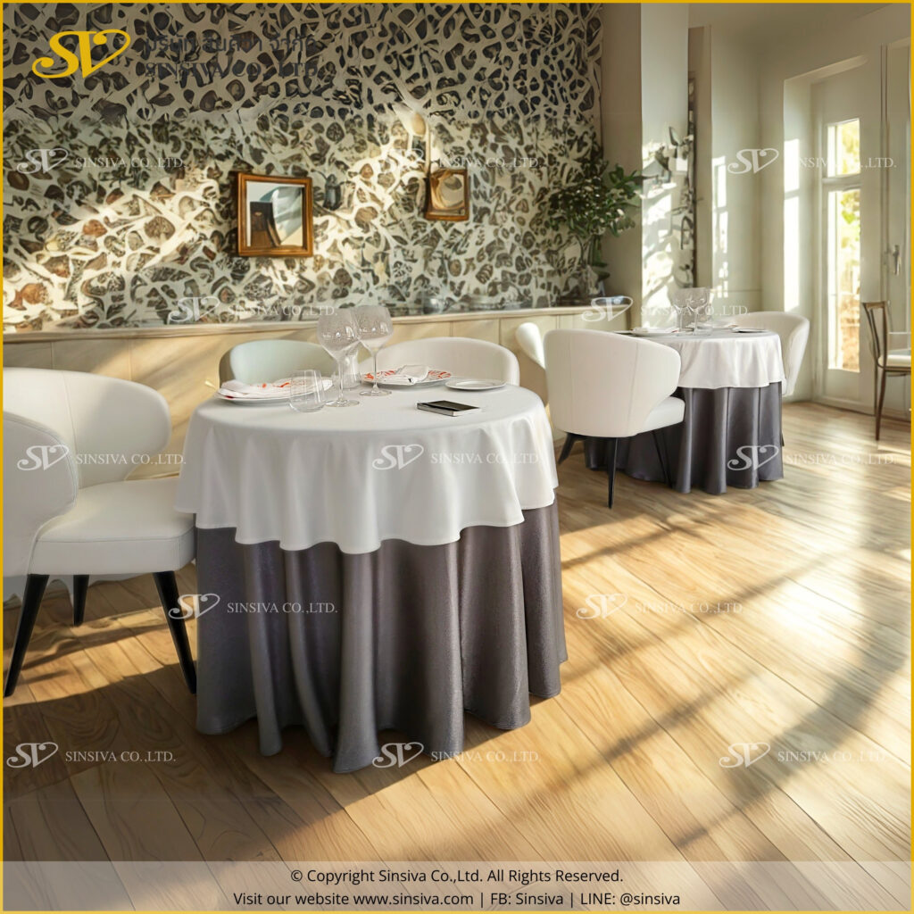 At SINSIVA, we offer a wide range of tablecloth styles—from elegant plain designs and vibrant colors to custom patterns tailored to your needs—ensuring your event looks perfect from every angle. Each tablecloth is crafted to withstand heavy use and is easy to clean without losing its shape, truly supporting professional-grade performance.